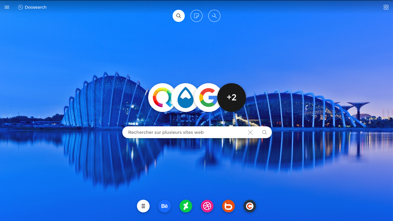 Doosearch est une page web qui propose dans une page d'accueil un formulaire de recherche avec la possibilité de lancer une recherche vers plus de 100 sites web différents (dont Google, Bing, DuckDuckGo et Qwant).